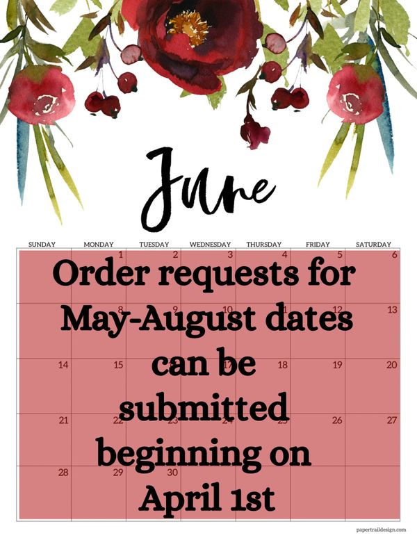 All dates are filled on a first come basis and only secured once deposit is received. We are happy to consider short notice orders but cannot always guarantee availability.